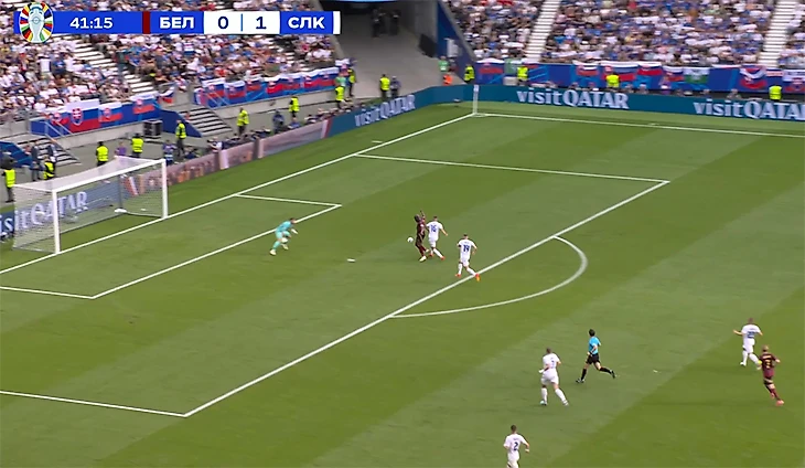 У бельгийского нападающего не пошло уже со второй минуты на Евро-2024: практически с линии вратарской пробил прямо в Дубравку. Один из лучших моментов сборной Бельгии в проигранном матче.