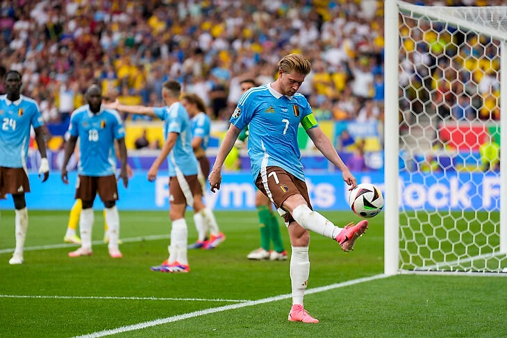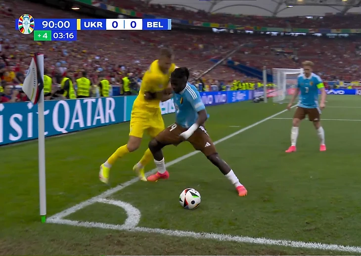 Бельгийцы в концовке с Украиной удерживали нули: заработали угловой, но Кевин де Брюйне разыграл мяч и принялся тянуть время. У углового флажка началось вот такое месиво – лишь бы украинцы не добрались до мяча.