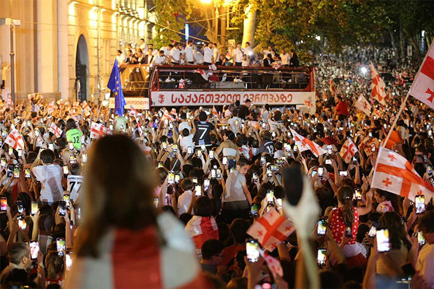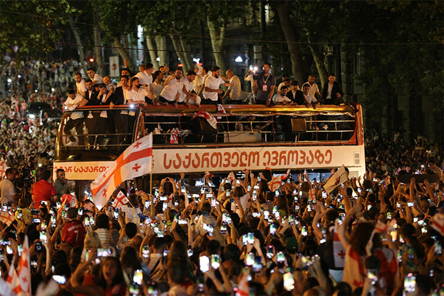 Тысячи человек вышли на улицы Тбилиси встретить героев.