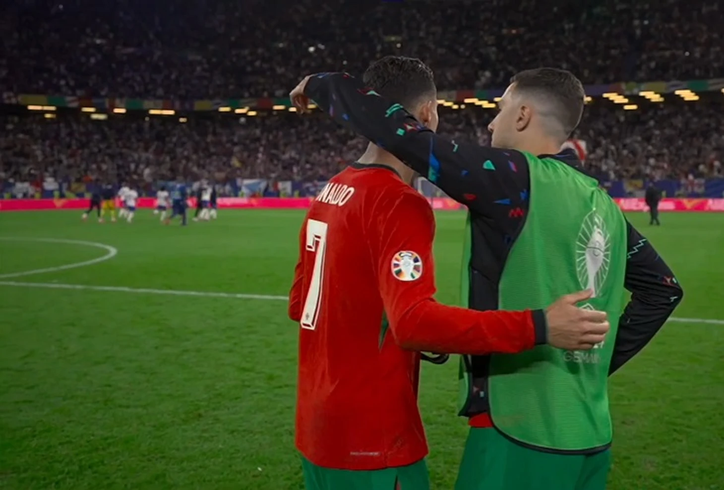 Первым из партнеров подошел утешить Диогу Далот – он же успокаивал после незабитого пенальти в игре против Словении.