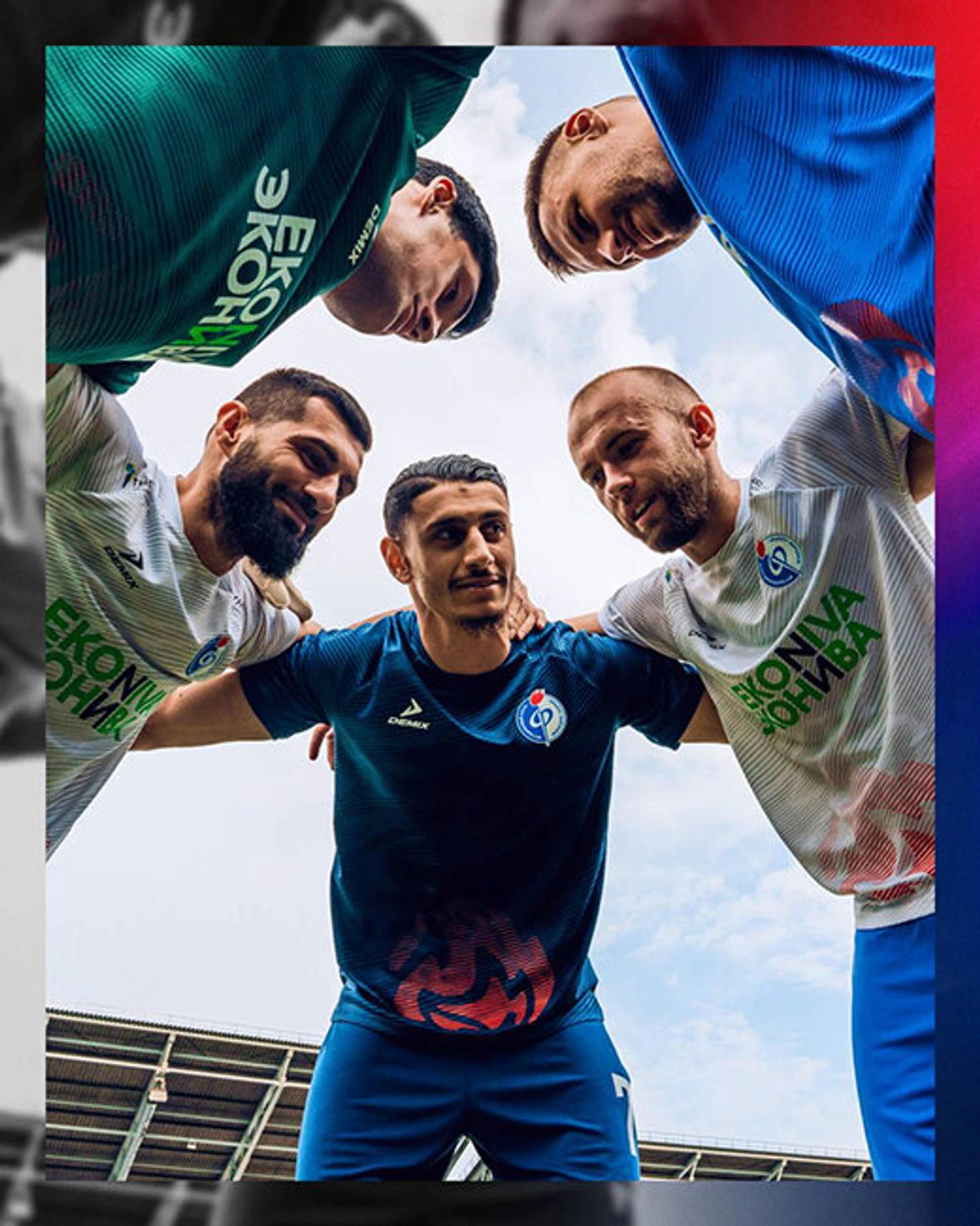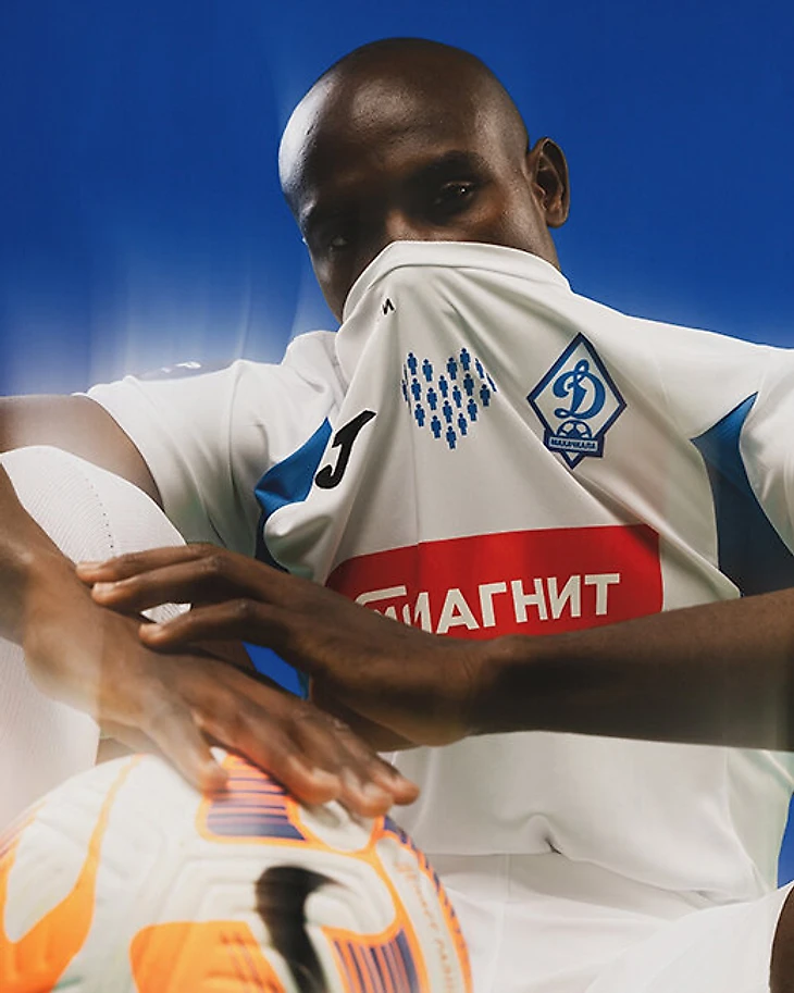 Еще один новичок РПЛ показал футболки синего и белого цветов со спонсорской рекламой «Магнита» в виде красной полосы. Также на форме размещен логотип благотворительного фонда «Чистое сердце» – базируется в республике Дагестан и помогает социально незащищенным слоям населения.