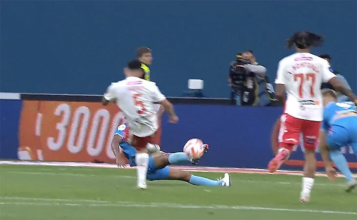 «Спартак» раскрутил быструю атаку, Маркиньос проскочил мимо колумбийца чуть левее центра, покатил в середину на Эсекиэля Барко, и спартаковец бил как будто пенальти, почти с точки, левой ногой нужно было положить под штангу.