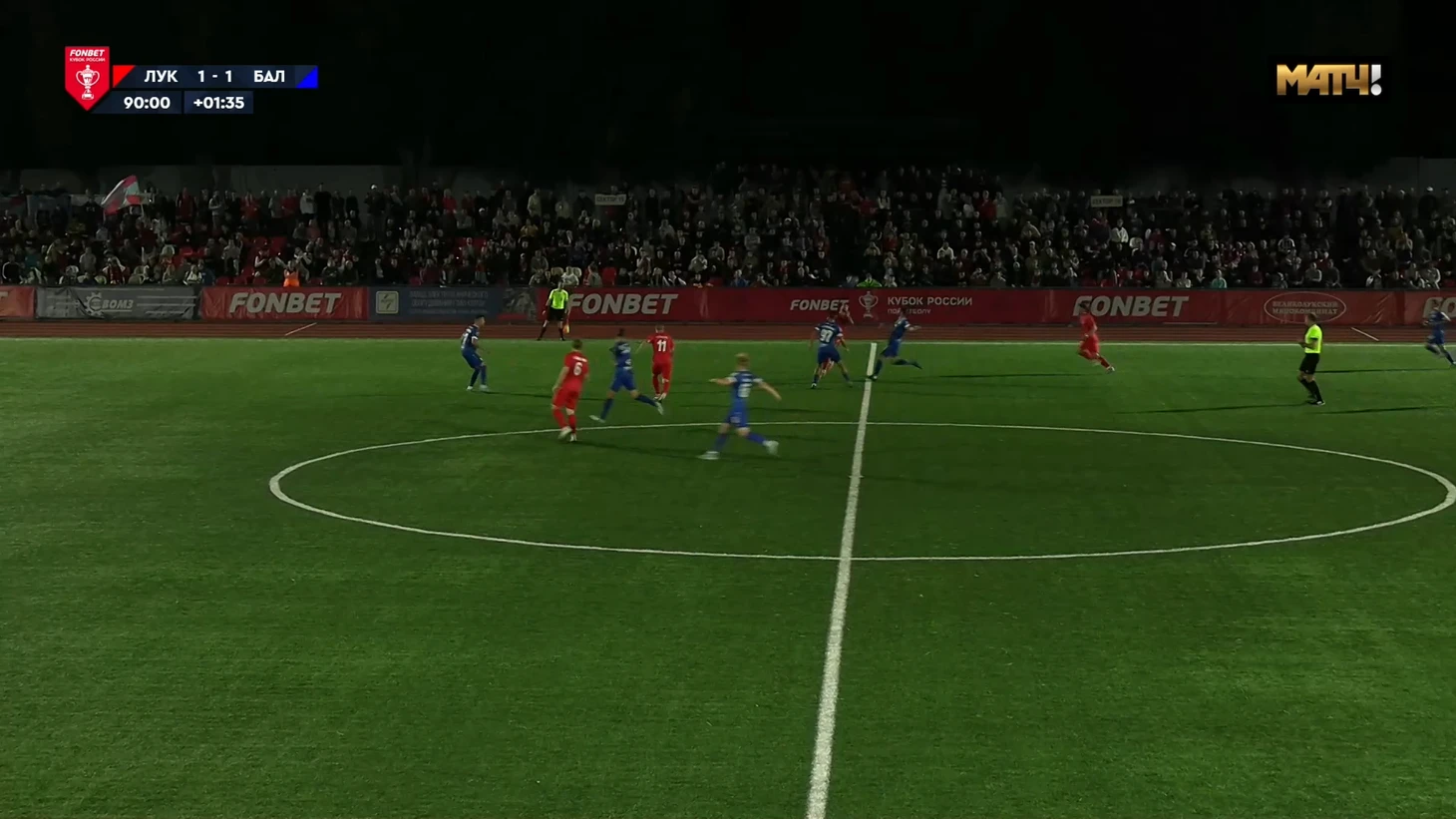 «Балтика» в итоге сыграла 1:1, дотянув до серии пенальти: третий вратарь команды Егор Любаков, которого летом пригласили из «Тюмени», взял один из ударов, а еще дважды промахнулся соперник. 3:1 в серии пенальти – «Балтика» прошла дальше на темном-темном стадионе.