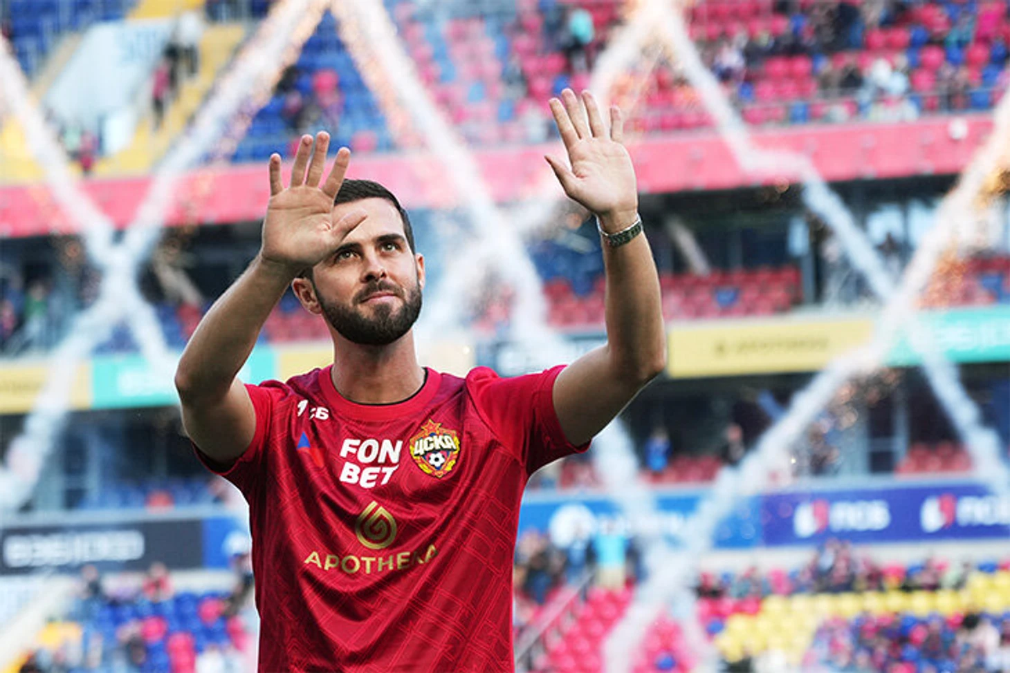 Перед матчем армейцы представили Миралема Пьянича. Звездный новичок говорил в микрофон «Мы – ЦСКА». А болельщики отвечали ему: «Мы победим».