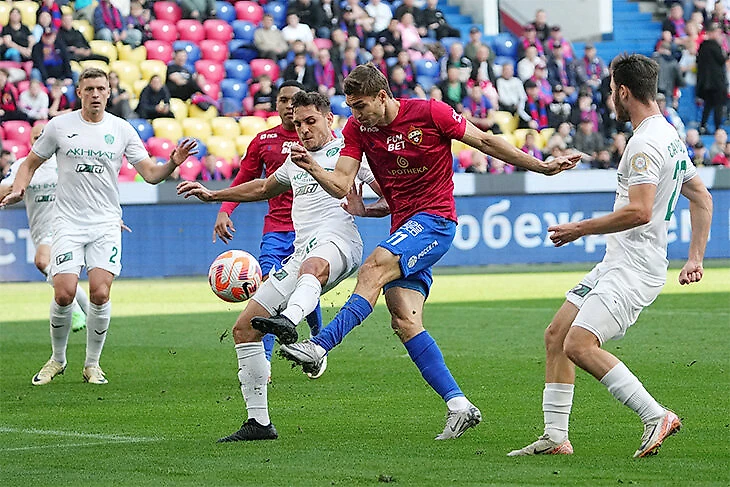 «Ахмат» очень сырой: Ташуев-болл впереди не работает (почти все ушли, на кого тренер опирался 1,5-2 сезона назад) и очень не хватает защитника Мирослава Богосоваца (выбыл на полгода из-за травмы крестообразных связок) слева. При этом хороший прессинг-отрезок в стартовые 10-15 минут – у ЦСКА ничего не получалось.