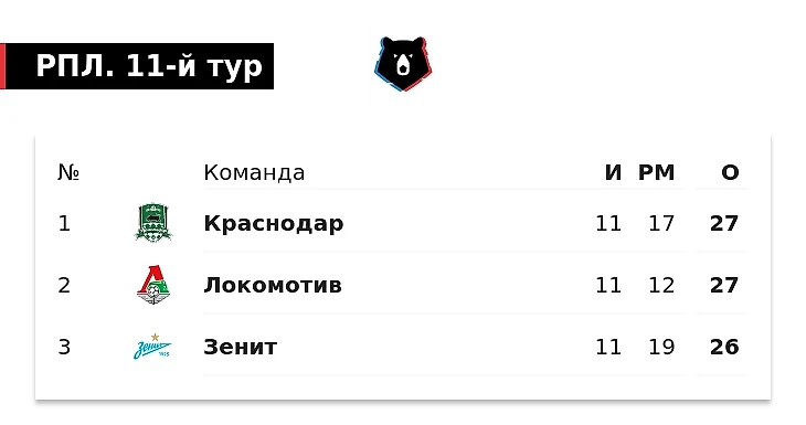 «Краснодар» по-прежнему первый – благодаря победе над «Локо». «Зенит» пока третий, но отстает лишь на одно очко. Первая тройка серьезно оторвалась: дальше идут ЦСКА и «Динамо», у них только по 20 очков.