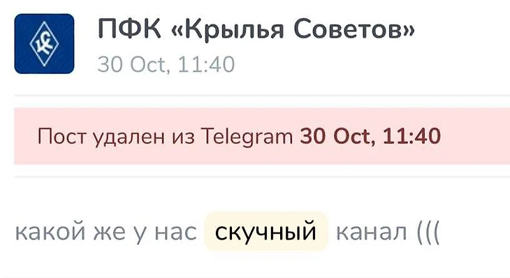 А ведь в конце октября «Крылья» думали, что у них скучный канал.