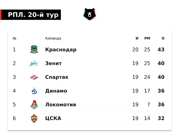 Команда Мурада Мусаева набрала 43 очка против 40 у двух конкурентов. «Спартак» в этом туре едет к «Рубину», а «Зенит» – к «Факелу». Разница голов у «Краснодара» теперь +25 – уже на уровне с конкурентами.