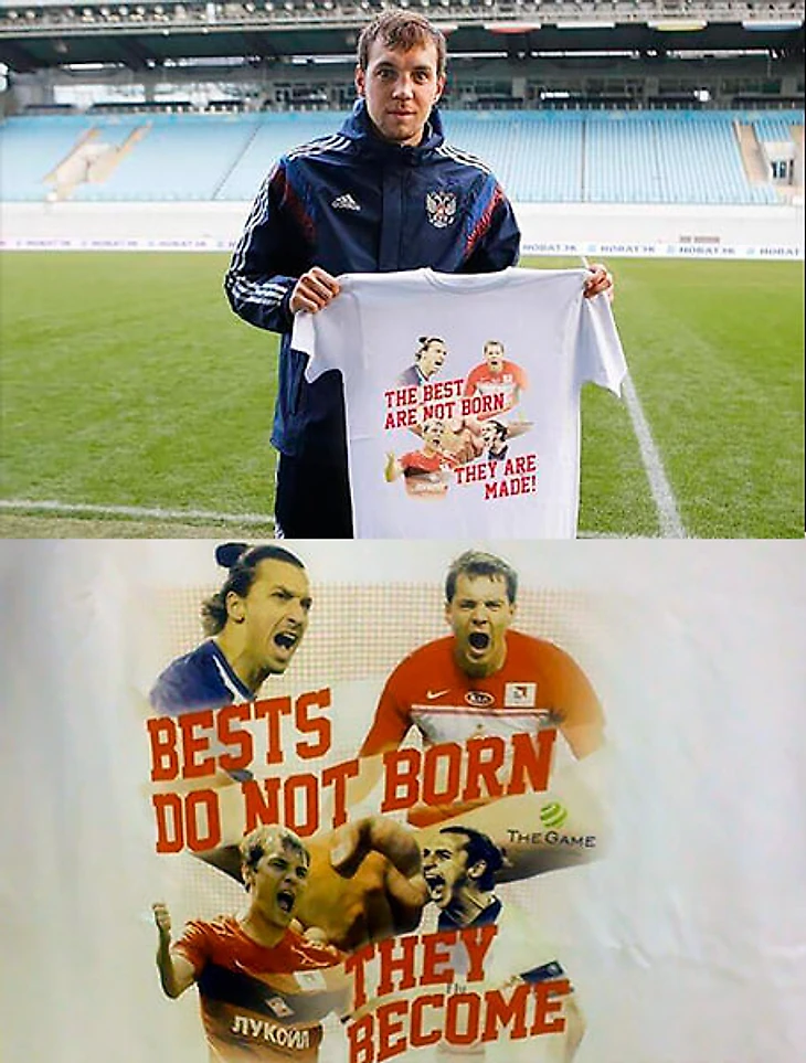 Октябрь 2014-го. Тогда Дзюба играл за «Спартак» и выступал за сборную, а к матчу квалификации Евро-2016 подготовил послание Златану Ибрагимовичу. Нападающий вышел на игру против шведов в футболке с надписью «Лучшими не рождаются, лучшими становятся!»