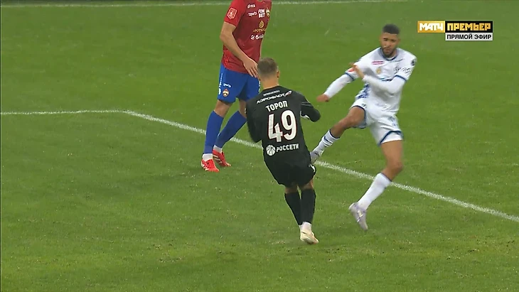 «Динамо» ответило роскошно: Дмитрий Скопинцев с линии штрафной зарядил в ближнюю девятку. Тут же красную карточку схватил Эль-Мехди Маухуб: шипами воткнулся в ногу вратарю Владиславу Торопу.