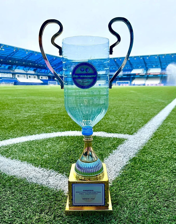 И да, организаторы заморочились и сделали настоящий трофей, который выглядит так, будто его сделал Андрей Александрович Бахметьев из передачи «Очумелые ручки». Дизайн из пятилитровой бутылки для воды – и ведь именно так и должен выглядеть «Кубок Эль-Пластико».