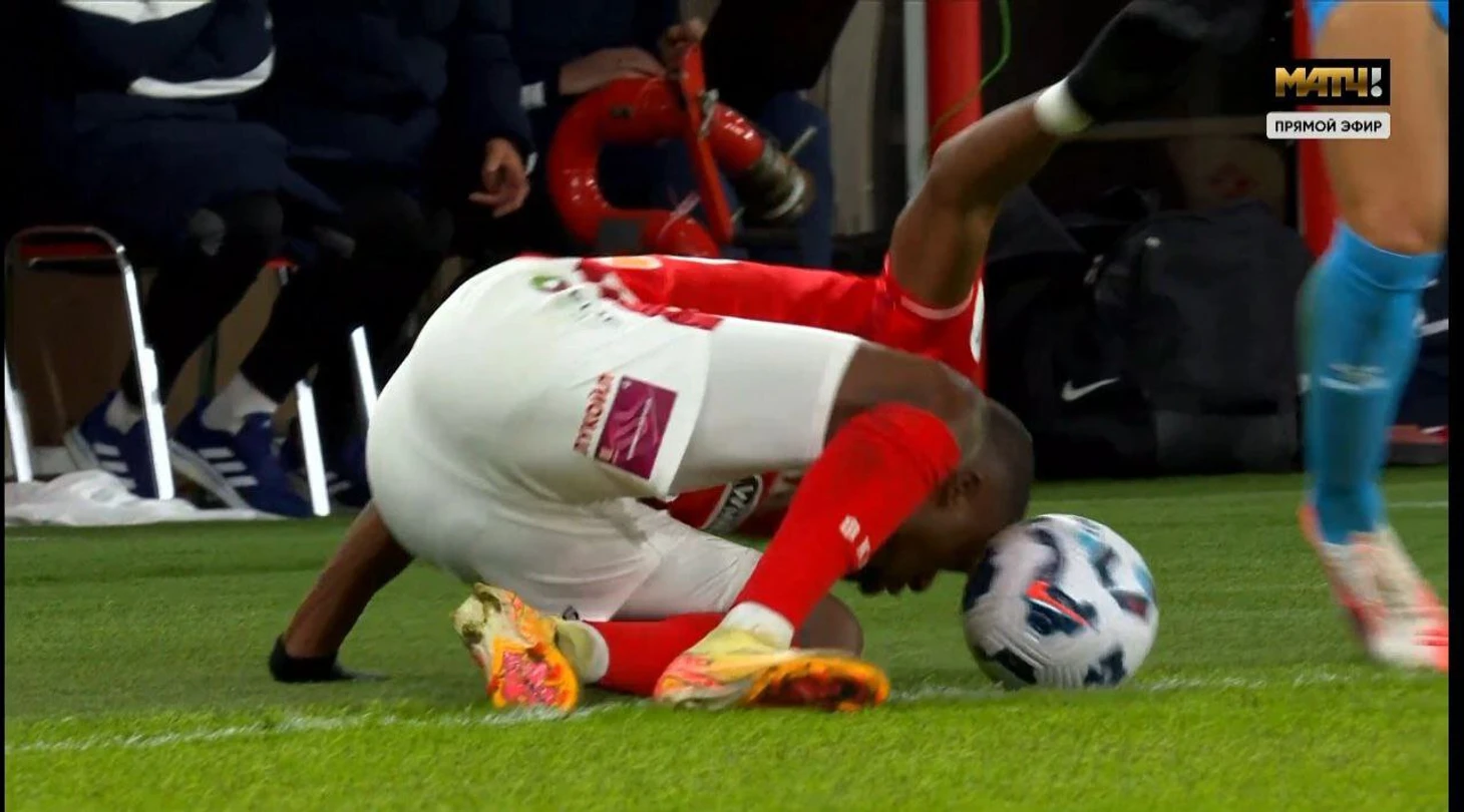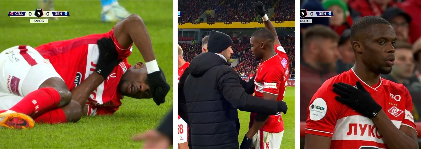 Спартаковский полузащитник к этому моменту вполне мог быть и заменен, потому что незадолго до, на 40-й минуте, он неудачно упал на плечо в единоборстве со Страхиней Эраковичем.