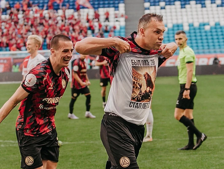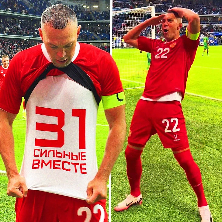 При этом футболку нападающий «Акрона» приготовил заранее. Она просвечивала через форму уже в матче против «Пари НН» за неделю до этого, но тогда поводов показать не было.