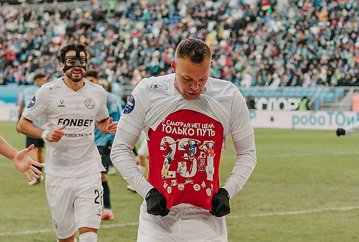 В марте Дзюба стал лучшим бомбардиром в истории российского футбола. Рекордный 234-й гол забил в ворота «Крыльев Советов» и показал заготовленную футболку с количеством забитых и цитатой «У самурая нет цели – только путь».