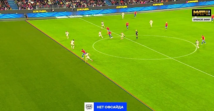 В пользу Сауля Гуарирапы – ВАР проверил и подтвердил, что он на одном уровне с защитником, и форвард забил единственный мяч. Помогло то, что плечо Сергея Петрова оказалось чуть впереди, подтвердили линиями.