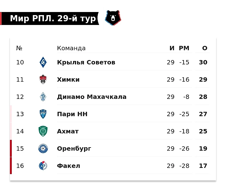 ● «Пари НН» надеются на потери конкурентов. Преимущество в личных матчах только против «Крыльев» и «Динамо». Но очков слишком мало, чтобы рассчитывать лишь на себя.
