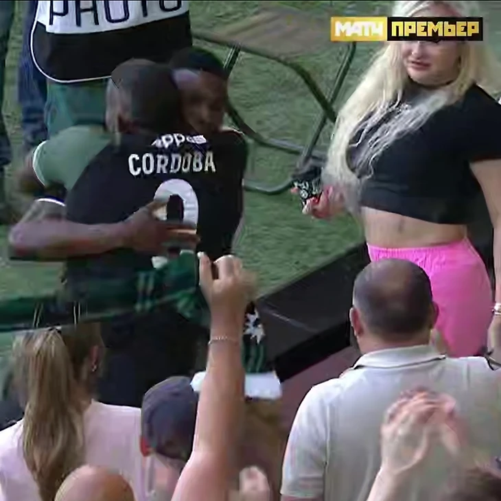 Джон Кордоба первым пришел на добивание после удара Эдуарда Сперцяна, а затем побежал праздновать на трибуну. Там его ждала семья в футболках с фамилией колумбийца.