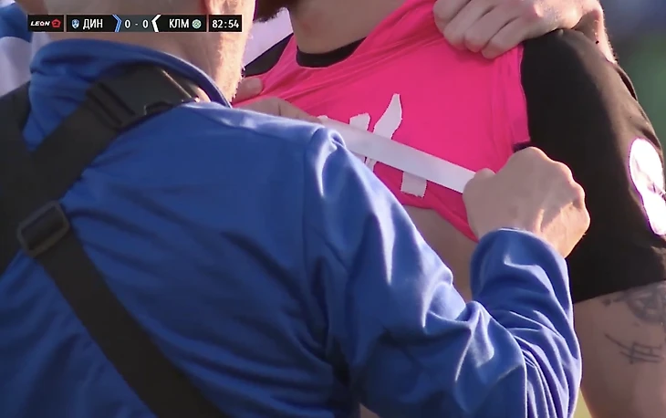У «Коломны», видимо, не было запасного комплекта – и Семену Боброву пришлось продолжать матч в рваном.