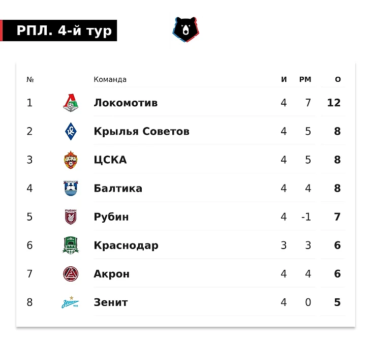 ● У«Зенита» только пять очков в четырех турах – на одно больше, чем у заболевшего «Спартака». Лидирующий «Локо» набрал аж 12 – уже вырисовывается приличный отрыв.