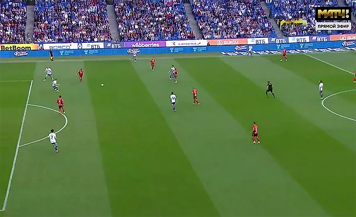 Уже на 13-й минуте поплыли под давлением: защитник Максим Осипенко отдал включившемуся в розыгрыш Бителло, а бразилец вернул сразу назад – вроде как Данилу Глебову. И пас вышел совсем слабеньким.