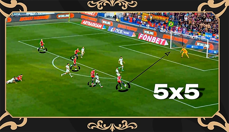 В тренировочном процессе основной акцент – на атакующие действия команды. Взаимодействие игроков и понимание эпизода – одинаковое.