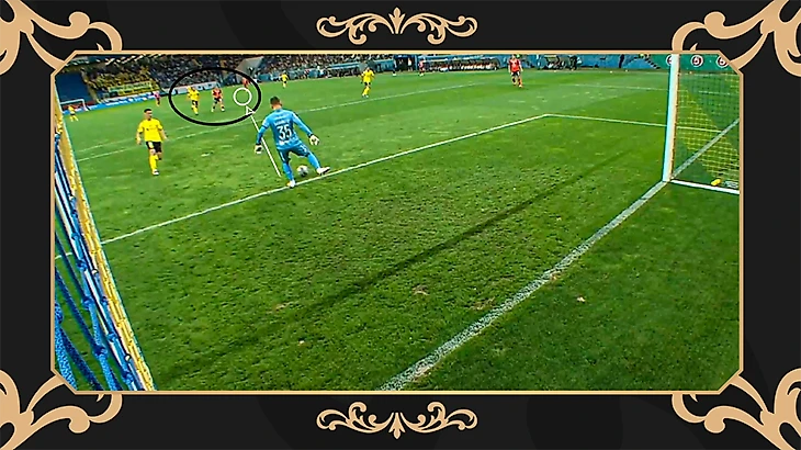 Мы видим камеру со спины: просто Игорь под давлением неудачно подработал мяч и надо было катить в «дальнюю ногу», где пространство. И этой потери бы не было. ЦСКА пропустил гол, но это ни о чем не говорит – по словам Челестини, они продолжают продвигать мяч так».