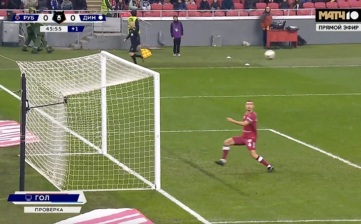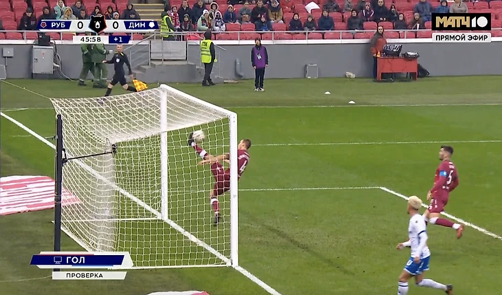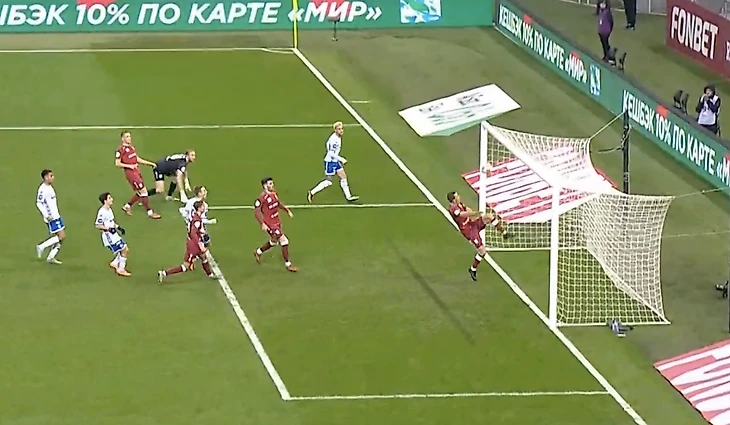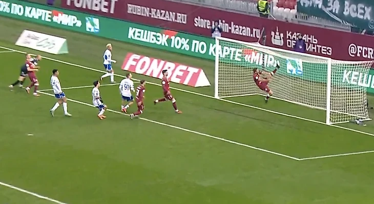 Так защитник «Рубина» Константин Нижегородов вынес мяч из пустых ворот.