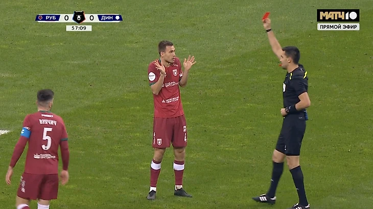А потом за фол на Константине Тюкавине – форвард «Динамо» убегал бы на пространство, но Нижегородов помешал ему сзади, опаздывал.