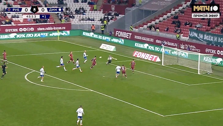 В самом конце первого тайма динамовцы почти забили: казалось, Бителло уже перекинул вратаря Евгения Ставера. И тут случилось это.