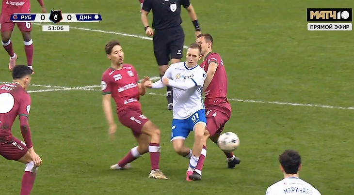 Вернемся на пару секунд назад. Тут у Бителло полная свобода, чтобы перебросить через Ставера. Нижегородов тоже явно это понимает (он – №4).