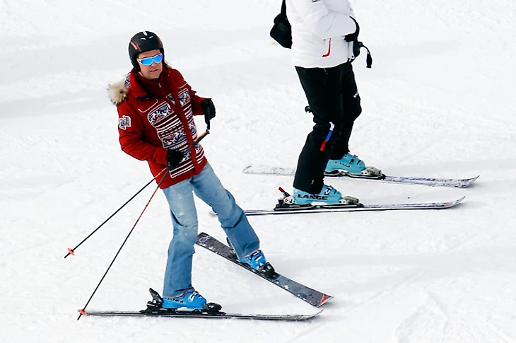 Там же, в горнолыжном центре: премьер-министр сам встал на лыжи: