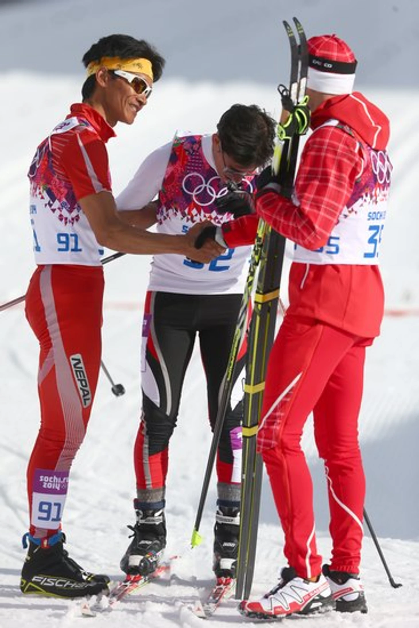 Дарио Колонья выиграл два золота в Сочи: скиатлон и 15 км классикой. Вот втором случае швейцарский чемпион остался на трассе, чтобы подождать непальского лыжника Дашири Шерпа и первого в истории Зимних Игр перуанца Роберто Карселена. Колонья пробежал дистанцию со временем 38 минут 29 секунд и семь десятых. Роберто Карселен показал время 1 час 6 минут 28,9 секунды.