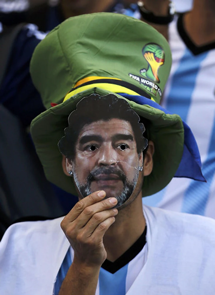 Маски Диего Марадоны – один из главных атрибутов болельщиков, прибывших в Бразилию из Аргентины.