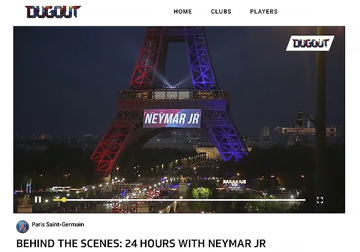 Особенным событием для платформы стал трансфер Неймара в «ПСЖ». Французский клуб дал Dugout эксклюзивный доступ к тому, что происходило вокруг перехода: фотосессии, официальное объявление, сопутствующие мероприятия. Все это освещалось не на официальном сайте французского клуба, не в соцсетях, а именно на площадках Dugout. Камеры, снимавшие материалы для Dugout, были ближе к бразильцу, чем все другие. У Dugout было право первым назвать игровой номер Неймара, показать печать его первой футболки, выложить эксклюзивные кадры встречи с президентом французского клуба, а также представления болельщикам.