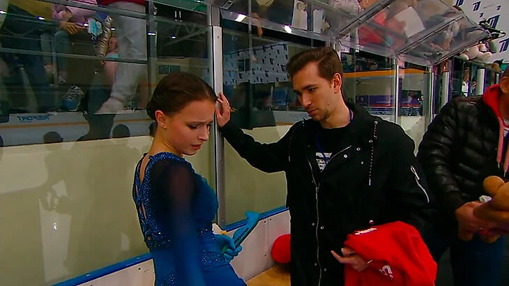 Вообще, до оглашения оценок она не выглядела довольной: вышла со льда хмурясь, качала головой и сразу на что-то жаловалась Глейхенгаузу. Это действительно не шикарный прокат.