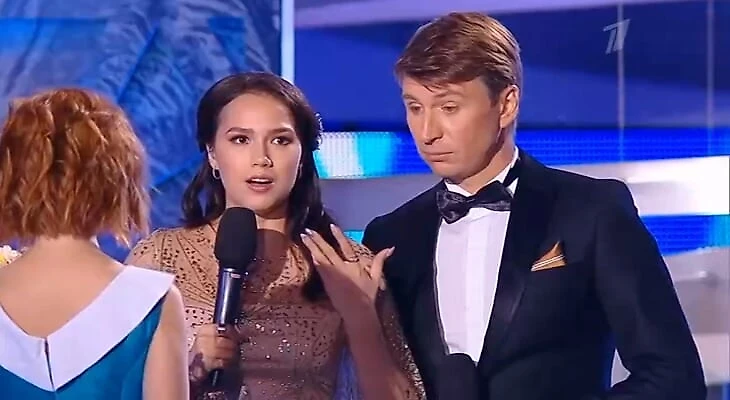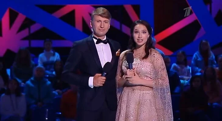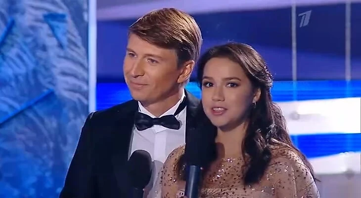 Загитова не оставалась в кадре одна: подводку они читали вместе, с судьями общался Ягудин, Алина задавала первый вопрос во флеш-интервью, а потом к ней присоединялся Алексей. Она постоянно смотрела на соведущего, а тот подсказывал ей и направлял.