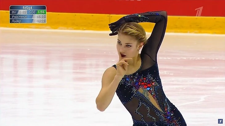Ее ждали дольше всех: это первое выступление после летнего перехода к Евгению Плющенко, и так поздно – лишь на четвертом этапе в Казани. Алена победила в короткой программе: без трикселя, который не до конца восстановлен, и с помаркой на каскаде.
