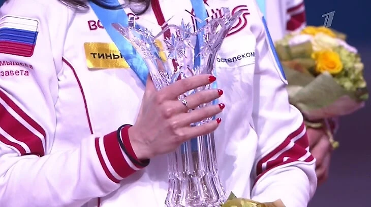 От пьедестала организаторы отказались: фигуристы выходили в кроссовках на красные дорожки, расстеленные по льду. Места для призеров разграничили с помощью небольших столов – на них поставили коробочки с медалями и цветы.