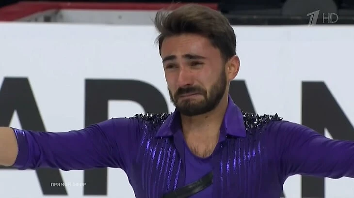 Каждый поклон залу он сопровождал трогательными слезами, а когда выходил со льда короткими выдохами успокаивал дыхание.