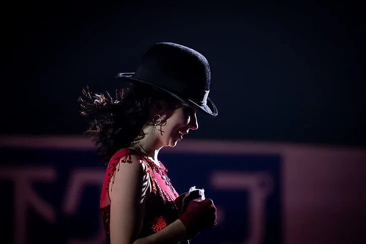 Автор Мария Селенкова Туктамышева опять за свое: начинала шоу-номер в пиджаке и шляпке, а осталась в платье-купальнике