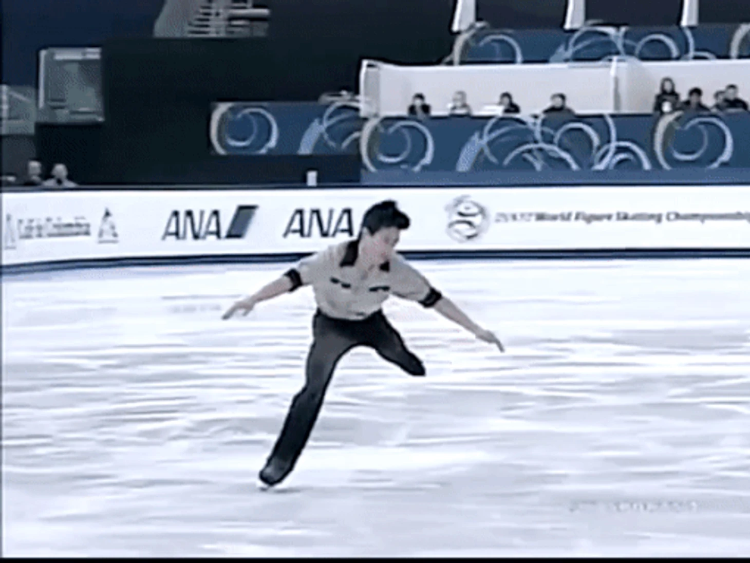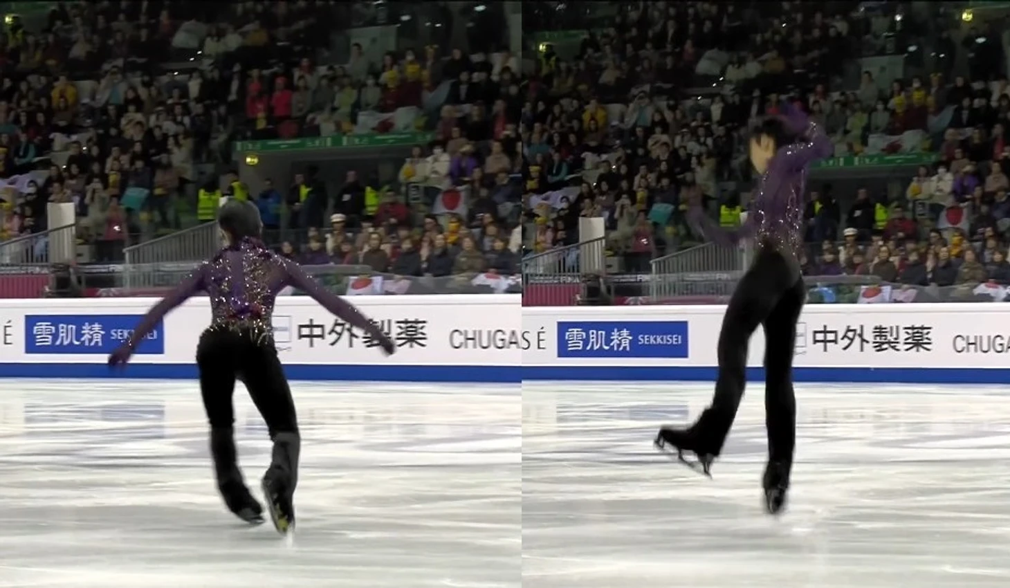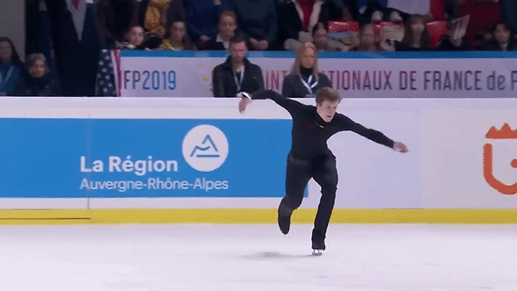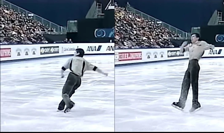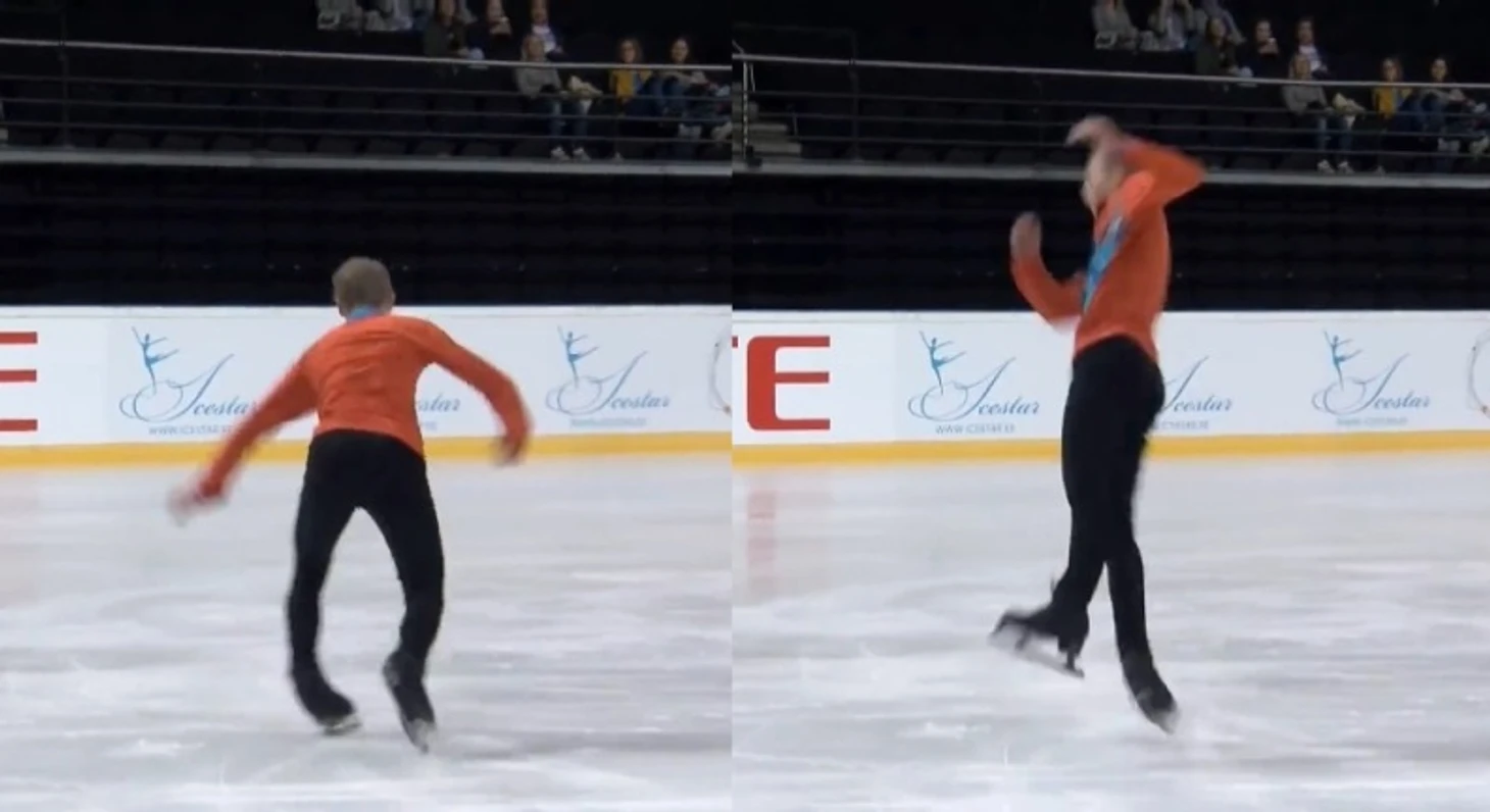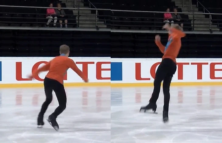 Для сравнения, что обычно происходит на льду во время исполнения рёберных прыжков: