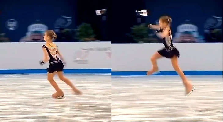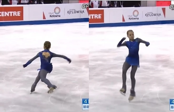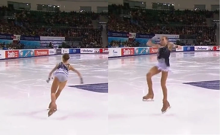 С другой стороны, диктор ни слова не говорит о том, что фигуристка часть от первого оборота выполнила до полёта в прыжке и что это недопустимо, либо это максимально возможный вариант, он вообще не говорит об этом. Единственное на что он обращает особое внимание: «Во время постановки носка правого конька, её левый конёк по-прежнему на глубоком внешнем ребре» - о необходимости внешнего ребра при выполнении прыжка – почему это важно, я подробно разбирал в предыдущем посте блога. https://www.sports.ru/figure-skating/blogs/2679828.html