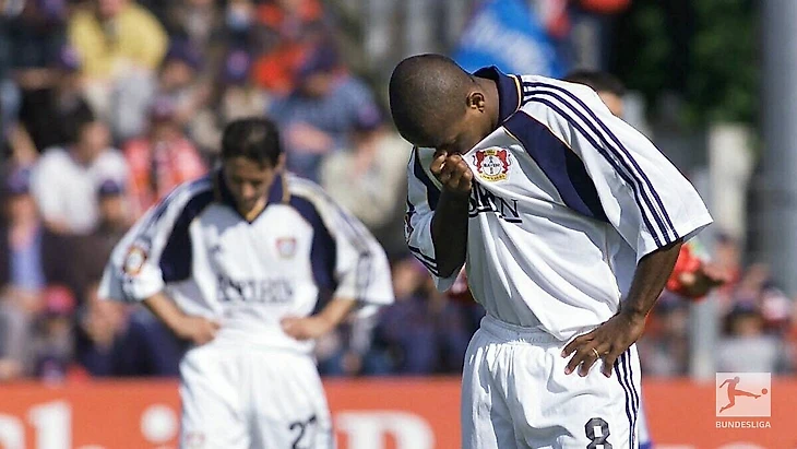 В чемпионате в это время произошел сущий кошмар. За три тура до финиша «Байер» опережал Дортмунд на 5 очков. Но два поражения подряд от «Вердера» (3-4) и «Нюрнбурга» (0-1) позволили «Боруссии» вырваться вперед. 4 мая 2002 года «Байер» в последнем туре хоть и обыгрывает «Герту», но все равно остается вторым. 11 мая клуб играл в финале кубка Германии с «Шальке». Как вы уже догадались, «Байер» проиграл 4-2.