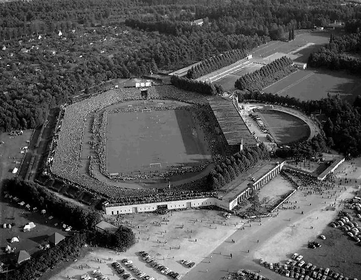 В 30-е годы, как вы понимаете, в Германии все было не так гладко. Теперь он стал главным стадионом гитлерюгенда. В ходе гугленья было найдено куча фоток этого непотребства, но, по понятным причинам, их тут не будет. Затем сюда пришли американцы и назвали эту арену «Стадионом Победы». И даже играли тут в бейсбол!