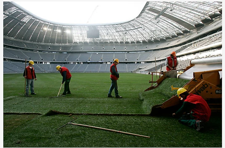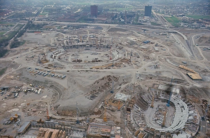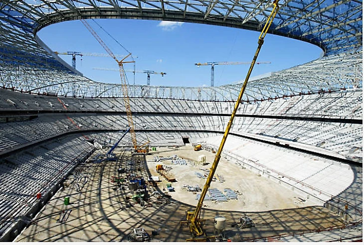 Несколько фотографий того, как стадион выглядел в процессе строительства: