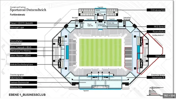 Меж тем, несмотря на выступление во второй бундеслиге, муниципалитет города и сам клуб хотят провести еще одну реконструкцию арены, после которой они наконец уберут беговые дорожки со стадиона, и сделают действительно современный стадион. На это дело планируется потратить от 300 до 500 миллионов евро, основную часть из которых заплатит город, а около 30 миллионов – клуб. Самое интересное, что какая-никакая смета уже есть, проведено несколько публичных слушаний, но макетом стадиона или более конкретных планов общественности ни город, ни клуб не предоставили. Пока планируется, что новая арена будет выглядеть как-то так: