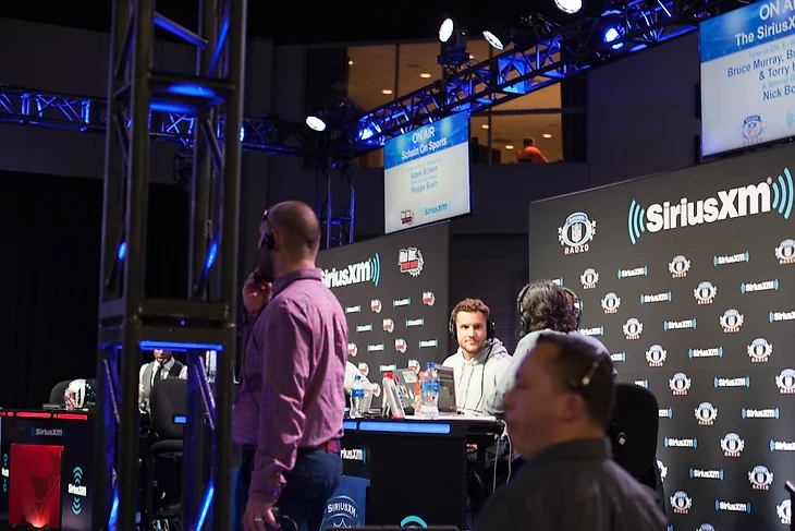 Организаторы на пальцах рассказывают мне, где что находится. Отмечаю для себя какие-то интересные мероприятия, которые хотел бы посетить. В первую очередь решаю спуститься в медиа-зону. Это огромное пространство, на котором находятся студии различных телеканалов и радиостанций. Все они, похоже, работают в прямом эфире. Черт, мне это кажется, или только что мимо меня прошел в сопровождении охраны сам Джерри Райс? Бородатый черный парень забирается в студию радио «Сириус ИксЭм», садится напротив ведущего и над ним зажигается дисплей – «Джерри Райс». Ку-ку. 200+ пасовых тачдаунов, 22000 ярдов на приеме, трехкратный чемпион НФЛ, член Зала славы, да и просто величайший футболист в истории игры по версии НФЛ Нетворк. Он здесь. Буквально минуту назад был на расстоянии вытянутой руки от меня. Начинаю рассматривать остальные студии «Сириуса»: помимо Джерри интервью дают Тони Данджи (Кумирище!), Джеймис Уинстон и Кристиан Маккафри. И это только одна площадка! А их здесь десятки! Делаю круг длиной в триста метров по периметру медиа-зоны. По дороге встречаю Роберта Матиса, Террела Дэвиса, Эрика Дикерсона, Грегга Дженингса, Патрика Махоумса (вот уж где звезда родилась!) и чувака в костюме орла. Ку-ку, блин. И это только те, кого я узнал в лицо!