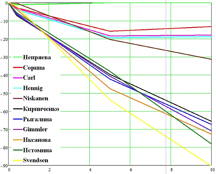Автор Skyline Графики прохождения разделок у женщин и мужчин на Всероссийских соревнованиях в Тюмени