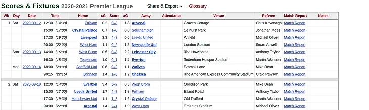 Будем использовать данные за последние четыре сезона, включая текущий. Источником послужит сайт fbref.com. Данные представляют собой результаты матчей, а также статистику по xG.