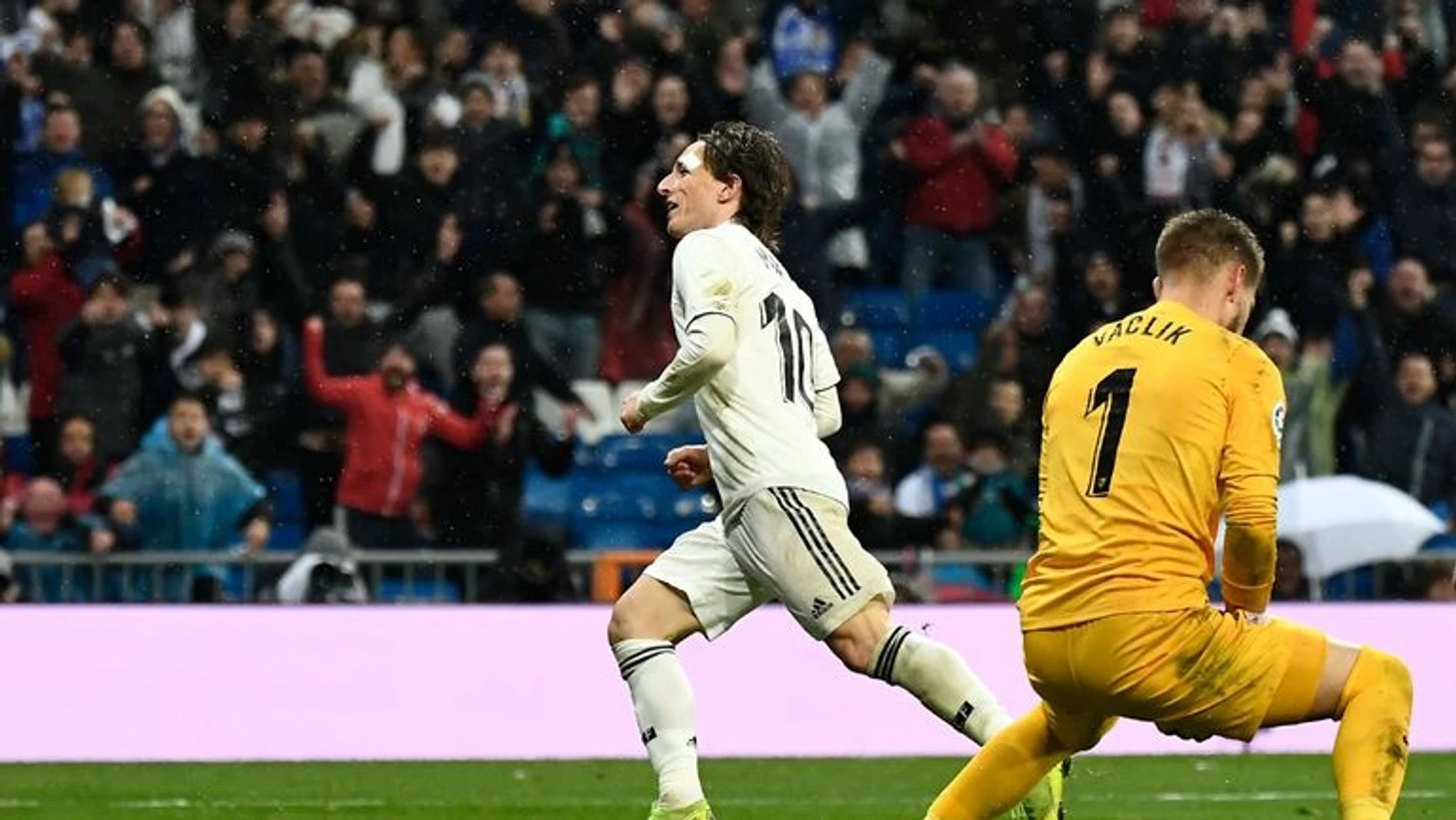 Реал провел действительно неплохую игру. Переиграв своего прямого конкурента, играя от себя, первым номером, преимущество было колоссальным по всем статьям: 61-39 по владению, 23-4 по ударам. Реал здорово воспользовался численным преимуществом на фланге, там и так было 2 фланговых игрока против одного, так еще и Себальос с Модричем часто смещались в полуфланги. Именно такие умные подключения Модрича, окончательно сломали сложенность обороны Севильи. Модрич провел крутой матч, дирижировал всеми атаками команды, совершил 4 удара,3 успешных обводки, 4 отбора. Модрич в этом поединке исполнял роль десятки, создавая дополнительную опцию в атаке. На мой взгляд именно на этой позиции Модрич может принести большую пользу Реалу за счет своих невероятно умных и нестандартных ходов, ведь именно его пас без касания на Каземиро позволил бразильцу спокойно принять мяч и пробить. Просто на своей обычной позиции хорвату, особенно против очень прессингующих команд, не будет хватать сил в своем стиле протаскивать мяч через всю полузащиту соперника или самому накрывать полузащитников оппонента при прессинге. Даже в этом матче Модрич не всегда успевал выполнить свою задачу-не давать Банеге быстро доставлять мяч до своих атакующих игроков. Но все-таки в этом матче Севилья часто передерживал мяч и поэтому Модрич, да и весь Реал успевал накрывать и в итоге это привело ко второму забитому мячу.